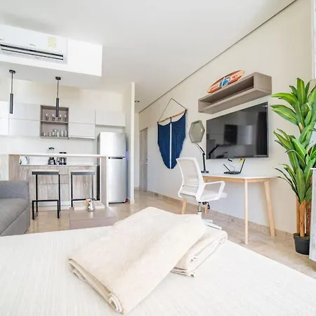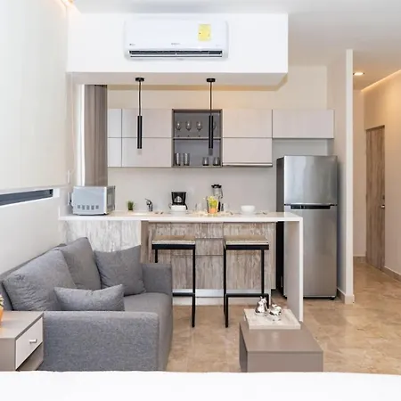 Katia 214 Estudio En Aldea Zama apartment comprises an equipped kitchenette for self-catering. Fast access to Playa Del Carmen, Quintana Roo airport within 65 km is provided. A swimming pool can be found on the premises.